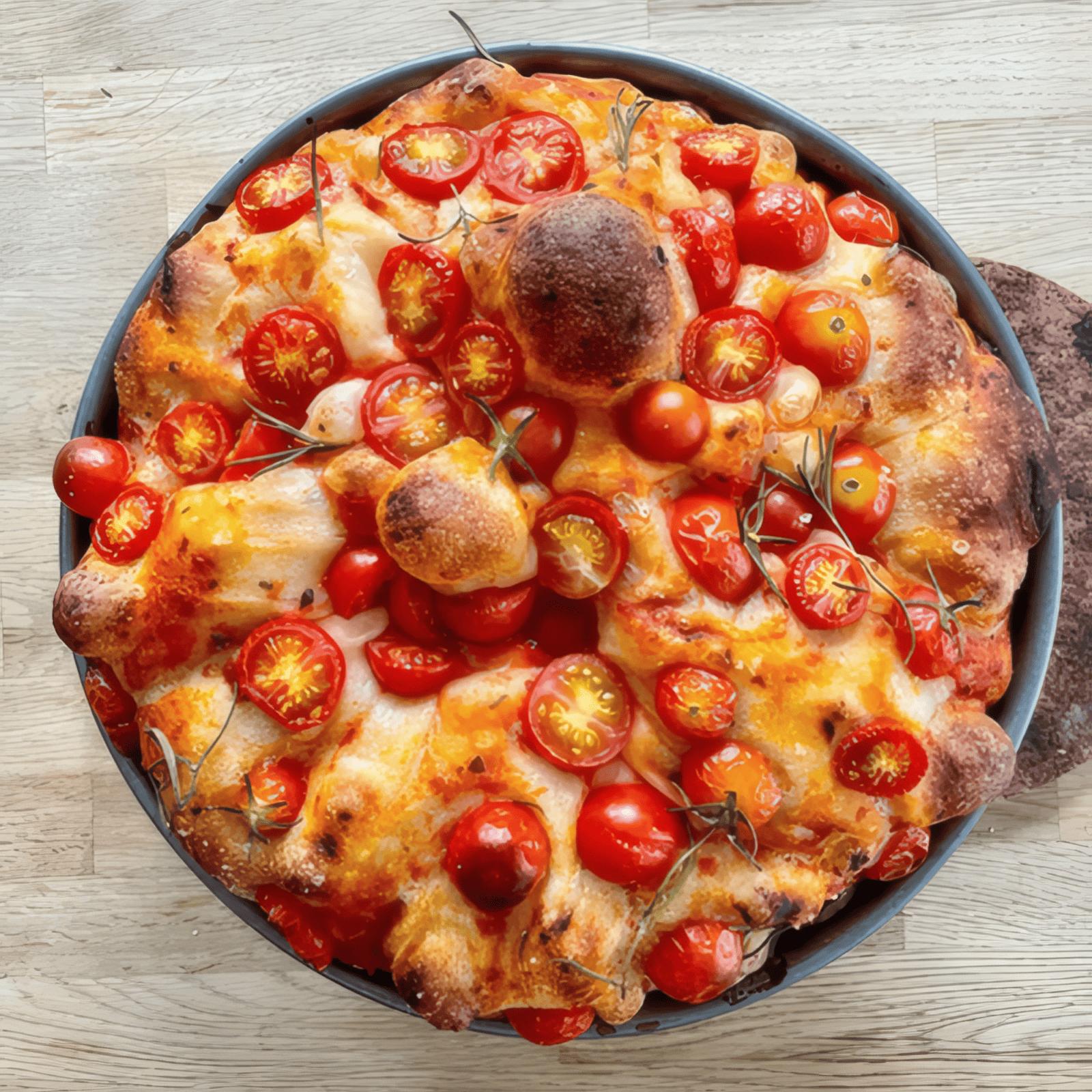 A focaccia é daquelas receitas que chamam atenção antes mesmo da primeira mordida. Com as coberturas certas e uma apresentação caprichada, ela vira o centro da mesa — simples de fazer e linda de servir.